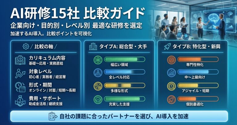 【2026年最新】AI研修おすすめ15社を徹底比較|料金・特徴・助成金対応