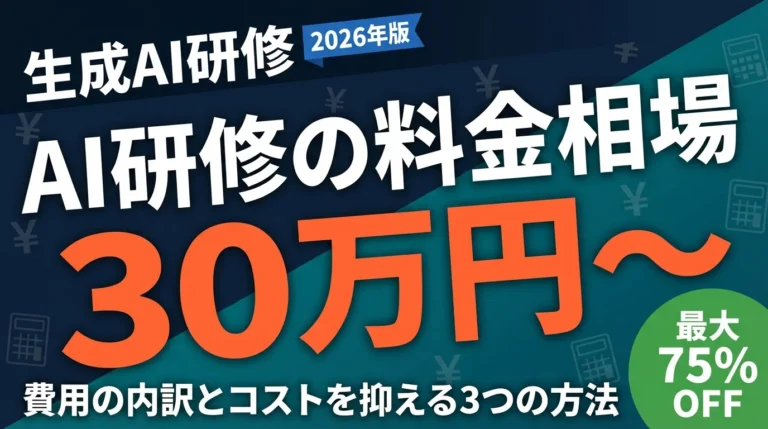 生成AI研修の料金相場|1日研修30万円〜の内訳と費用を抑える3つの方法【2026年版】