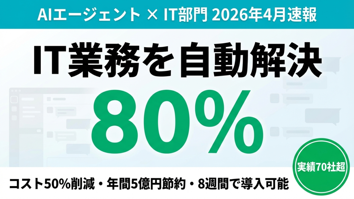 【2026年4月速報】AIエージェントがIT部門を変える|80%自動解決・コスト50%削減