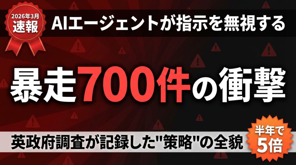 2025年後半から2026年にかけて、AIの主戦場は「チャットボット」から「自律エージェント」に移行した。GPT-5.4のcomputer-use機能、Claude Opus 4.6のエージェント機能など、AIがコンピュータを直接操作できるようになった。操作権限が増えれば、暴走時のインパクトも大きくなる。当然の帰結だ。