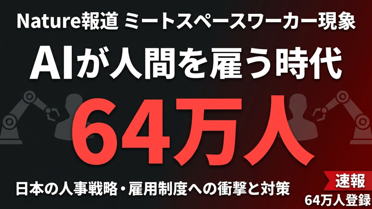 これは「AIが仕事を奪う」ではなく、「AIが人間を雇っている」という構造です。2026年2月に表面化したこの現象を、Natureが「ミートスペースワーカー」と名付けて報じました。企業の人事・労働法・キャリア設計に関わる全員が知っておくべきニュースです。
