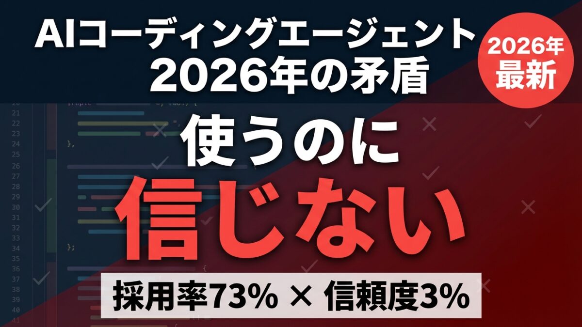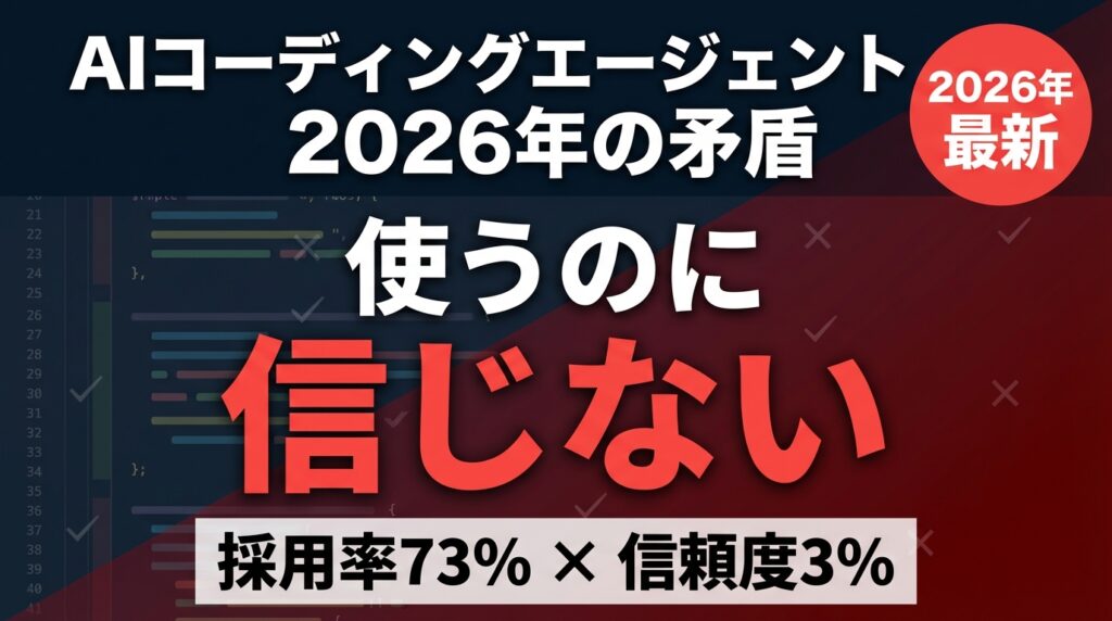 ところが同じ開発者たちの96%が「AI生成コードを完全には信頼していない」と答えている。使っているのに、信じていない。この矛盾した状態が、2026年3月現在のソフトウェア開発業界のリアルだ。