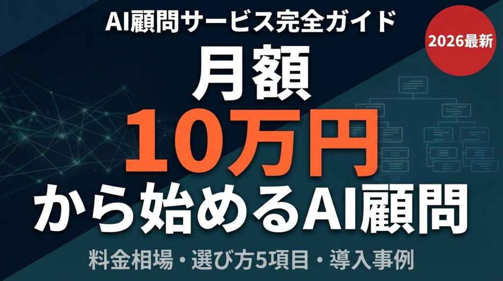 結論: AI顧問サービスは月額5万円〜80万円と幅広いが、中小企業(年商30億円以下)が成果を出すには「伴走型・月額10万〜30万円・業務分解から入る」タイプが最適です。