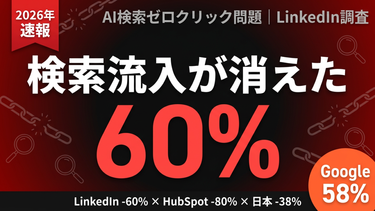 この現象は「ゼロクリック検索」と呼ばれ、B2Bマーケティングの巨人LinkedInすら「検索流入が60%減少した」と公表する事態になっています。SEO対策に年間数百万円を投じている企業にとって、これは無視できない警告です。
