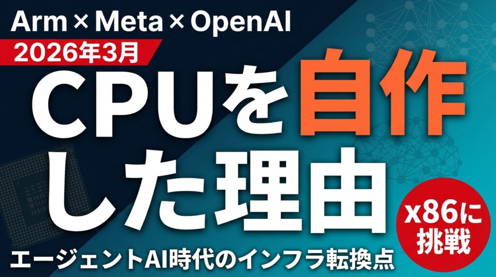 そのArmが、2026年3月24日に自社初のデータセンター向けCPU「Arm AGI CPU」を発表した。しかもMeta(旧Facebook)と共同開発で、OpenAI・Cerebras・SAP・Cloudflareまで採用を表明している。