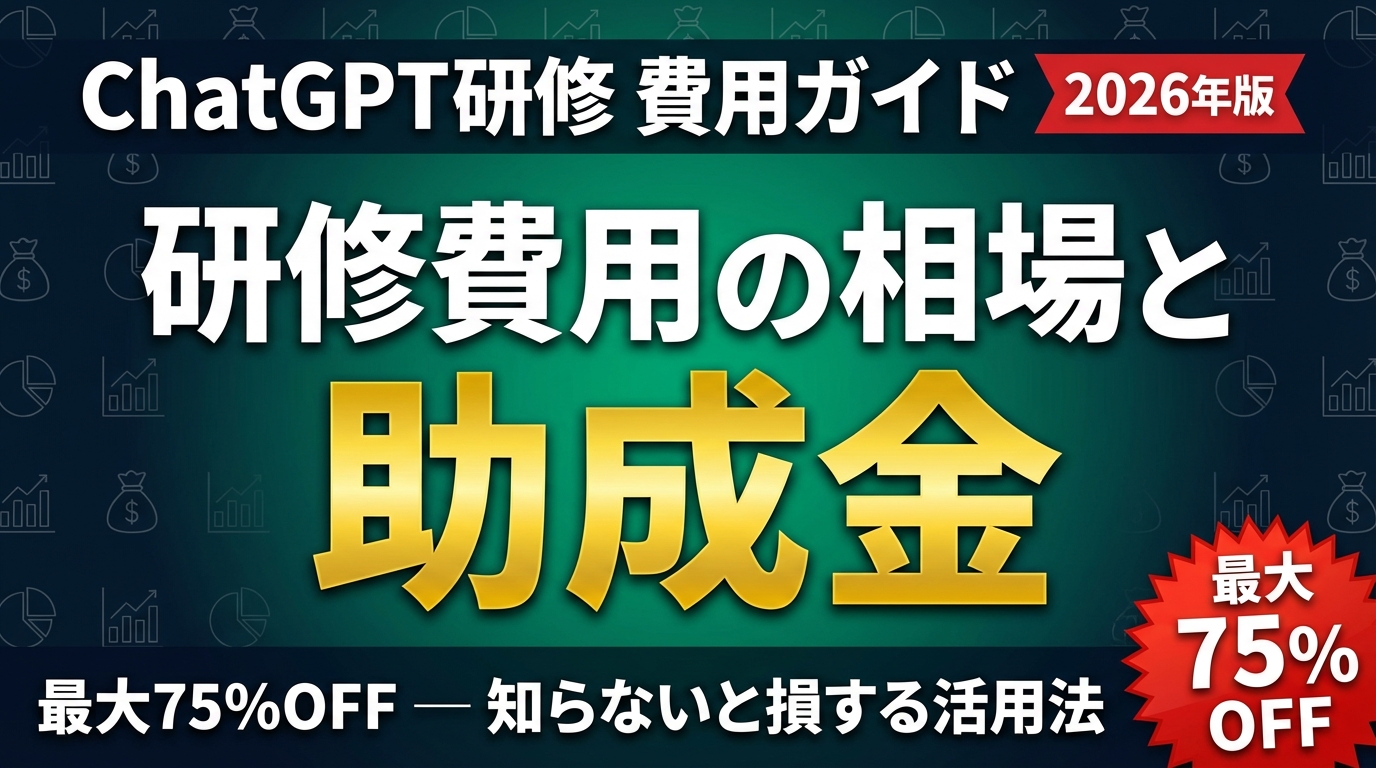 この記事では、ChatGPT研修の費用相場を形態別に徹底解説しつつ、2026年に使える助成金・補助金の最新情報をまとめました。さらに、研修を選ぶ前に「まず5分で試せるテクニック」も紹介しています。100万円の研修を申し込む前に、まずこの記事を読んでみてください。