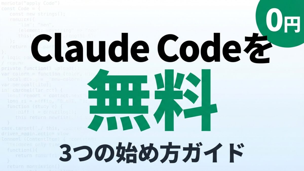 結論: Claude Codeは無料で始められる。Pro/Maxサブスクなしでも、APIの無料クレジットやOSSツール経由で利用可能。無料で使う全方法と、有料プランに移行すべきタイミングを解説する。