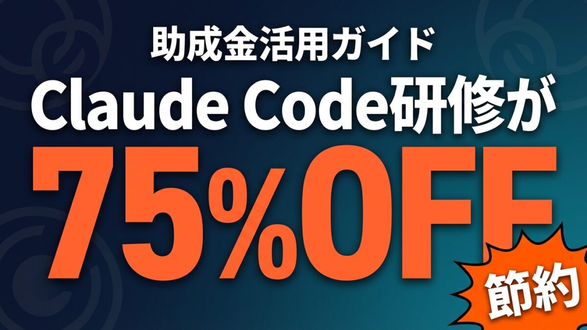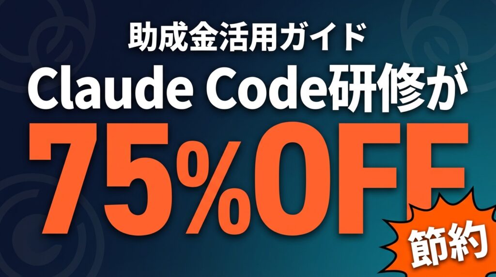 結論: Claude Code研修は人材開発支援助成金を活用すれば受講料の最大75%が補助される。申請条件・対象経費・手順を解説し、実質コストを試算する。