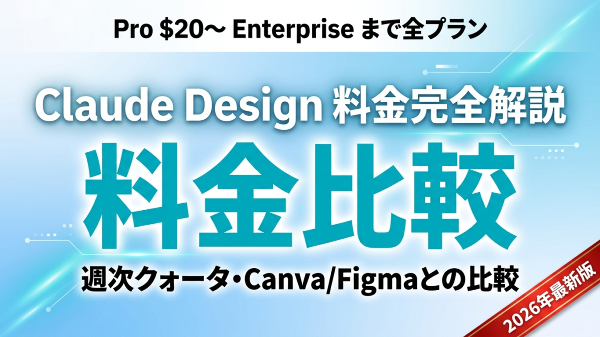 この記事では、Claude Designの各プランの料金と週次クォータの仕組みを整理し、企業導入時の予算目安まで解説します。比較対象としてFigma・Canvaとの料金・機能の違いも表でまとめました。