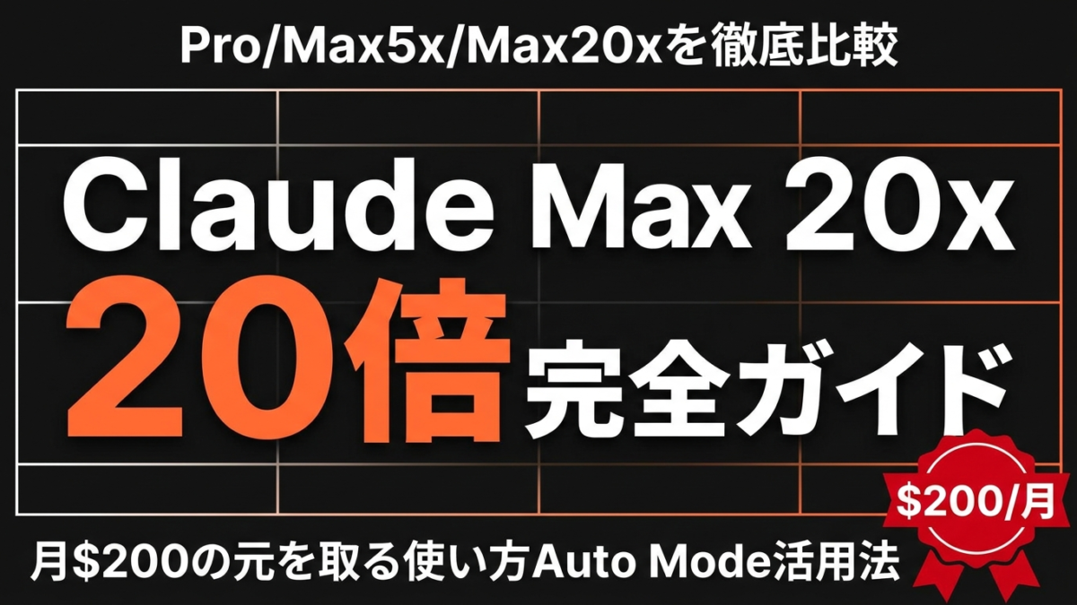 結論: Claude Max 20xは月額$200でPro比20倍の使用量を確保するAnthropicの最上位プランです。Pro($20)・Max 5x($100)との決定的な違いは「使用量単価の安さ」と「Claude Code Auto Modeへの優先アクセス」にあります。
