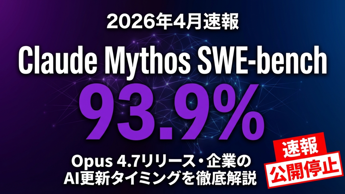 【2026年4月速報】Claude Mythos SWE-bench 93.9%の衝撃|Opus 4.7リリース予測と企業のAI更新タイミング完全ガイド