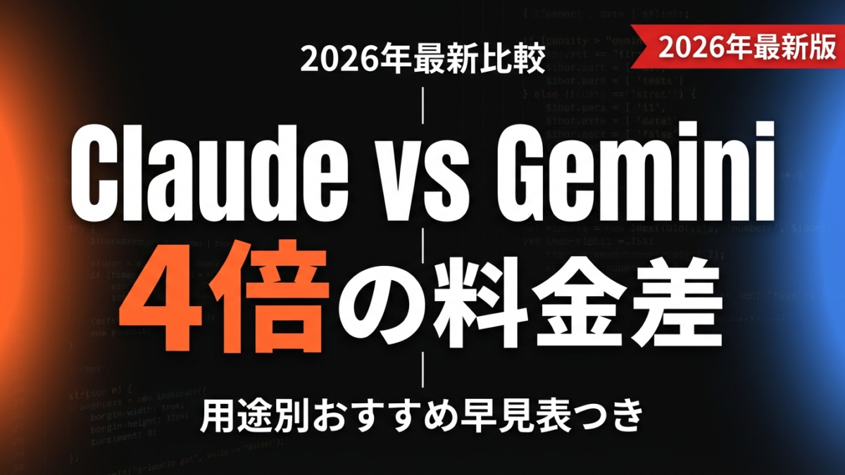 この記事では、100社以上のAI研修・導入支援の経験をもとに、Claude vs Geminiを料金・ベンチマーク・コンテキスト長・API・得意分野の5軸で徹底比較します。用途別おすすめ早見表もつけたので、今日の意思決定にすぐ使ってください。