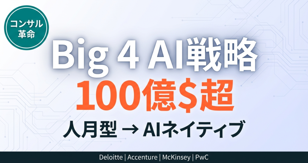 この記事では、Deloitte AI Navigatorの全貌、Big 4+MBBのAI戦略比較、そして「人月型コンサル」が終わる未来を解説します。