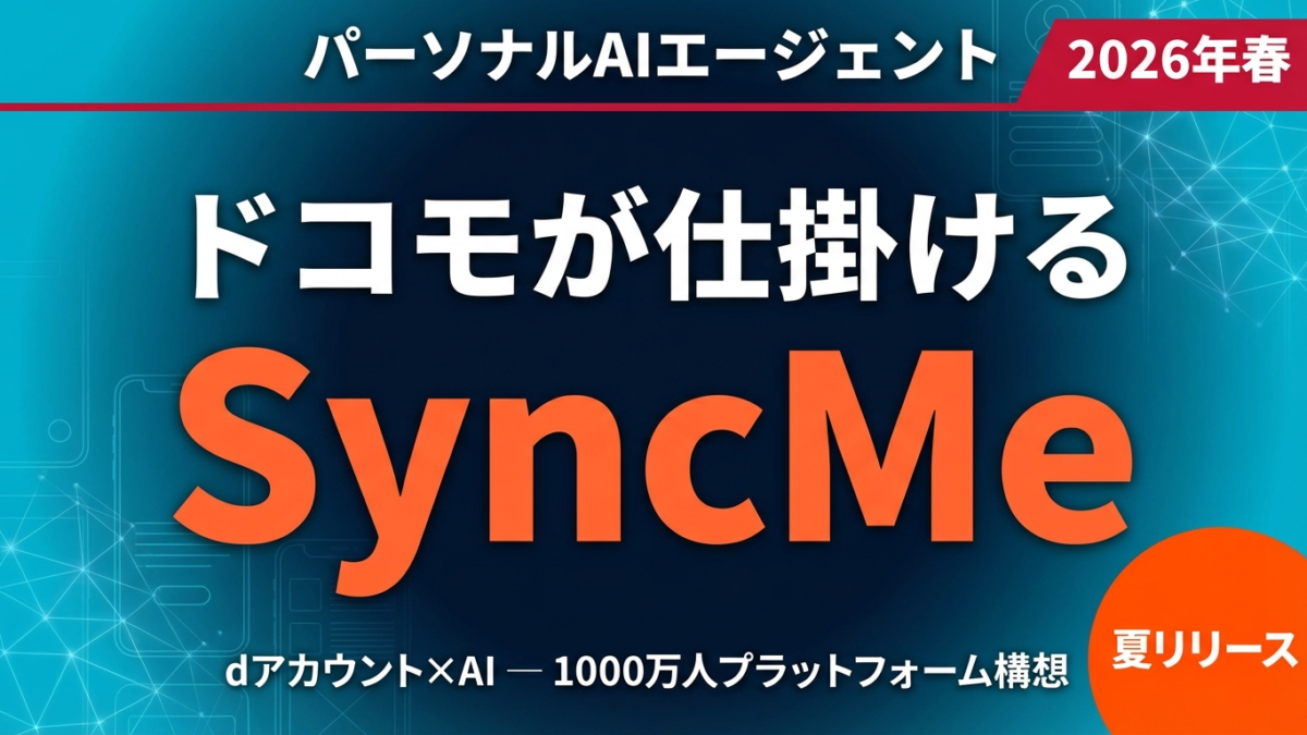 ドコモのSyncMe発表は、KDDI・ソフトバンク・楽天の対抗策を引き出すはずです。2026年後半は通信キャリア発のAIエージェントが相次いで発表される可能性があります。