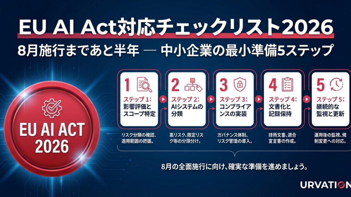 EU AI Actは、AIを活用する全ての企業にとって「対岸の火事」ではありません。特に、EU企業との取引がある日本企業は、2026年8月2日の本格施行に向けて、今すぐ動き出す必要があります。