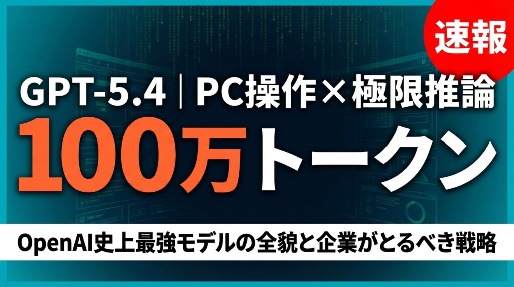 | 3月5日 | GPT-5.4 Thinking / Pro リリース | 100万トークン、PC操作、極限推論を搭載 |