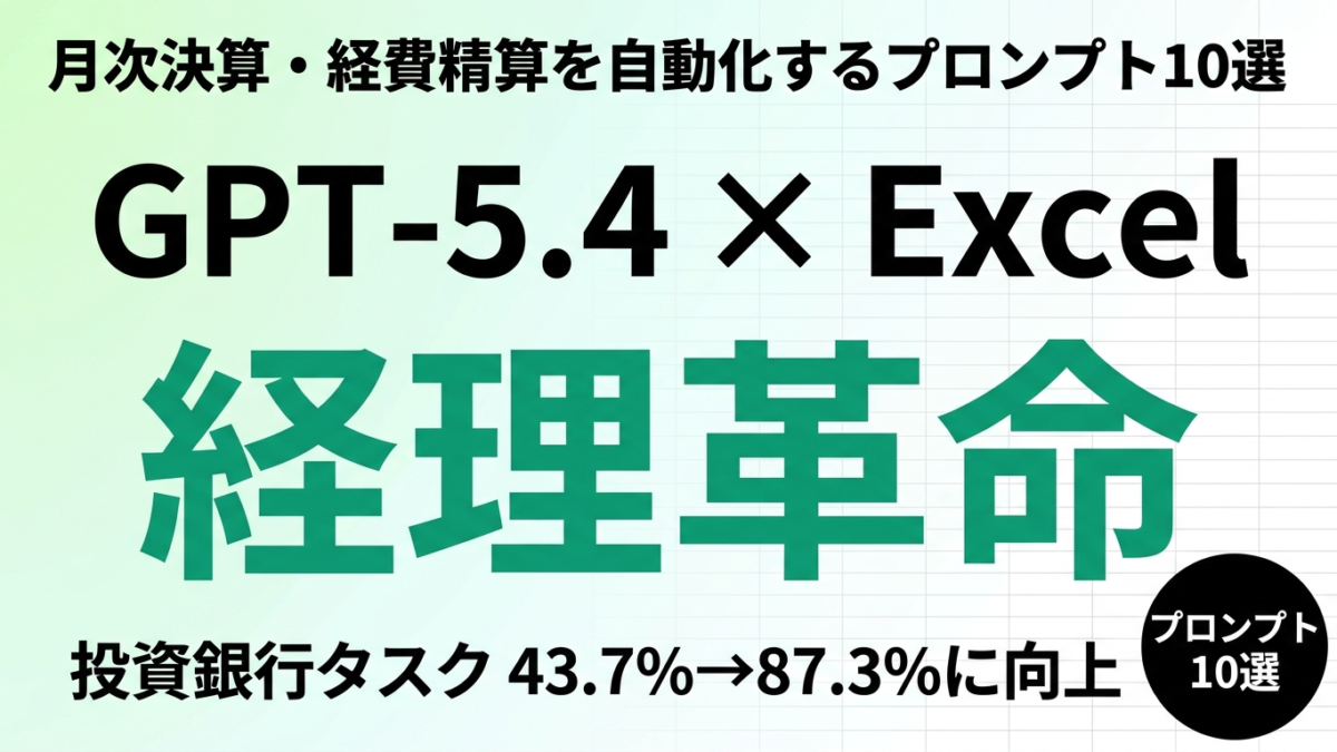 結論: GPT-5.4搭載の「ChatGPT for Excel」は、月次決算・経費精算・予実管理などの経理業務をスプレッドシート内から自然言語で自動化でき、内部ベンチマークで投資銀行業務タスクのスコアが43.7%から87.3%に向上した実力派ツールです。