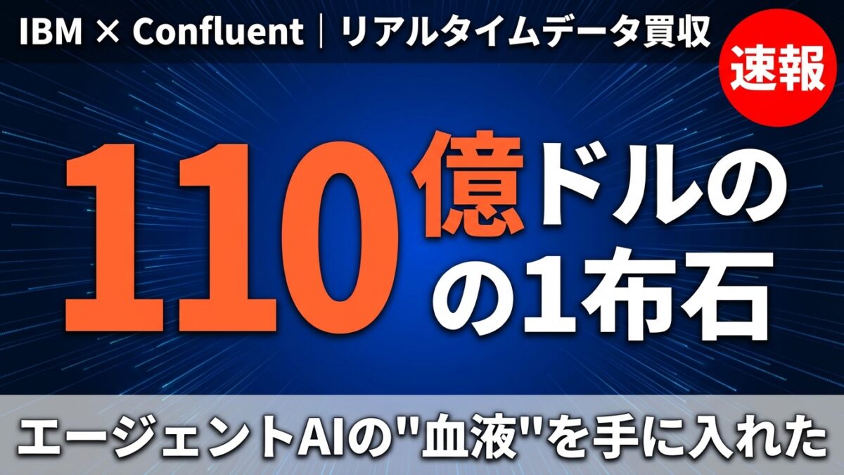 なぜなら、この買収の本質はAIエージェントが「古いデータ」では動けないという現実に対するIBMの回答だからだ。生成AIの次のフェーズ——自律的にタスクを実行する「エージェントAI」の時代に、リアルタイムデータなしでは勝負にならない。IBMは110億ドルを投じて、その基盤を一気に手に入れた。