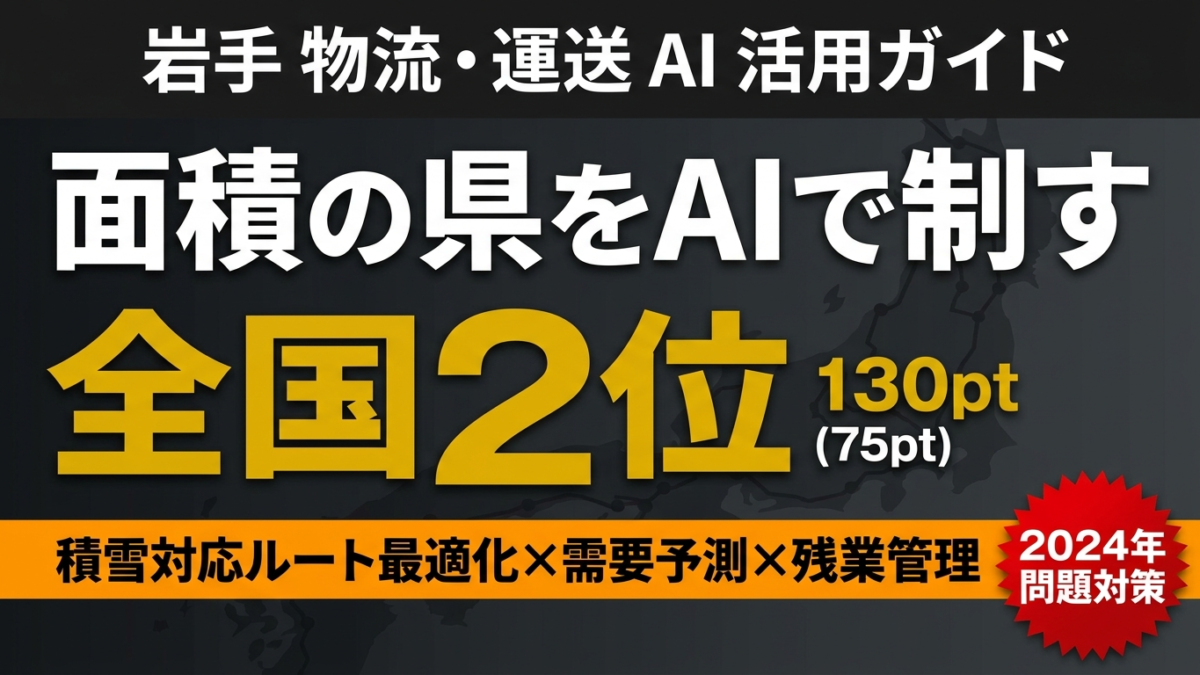 結論: 都道府県2位の面積を持つ岩手県(15,275km²)では、AIルート最適化・需要予測・ドライバー支援AIを組み合わせることで、2024年問題(残業規制)による輸送力不足を乗り越えられます。