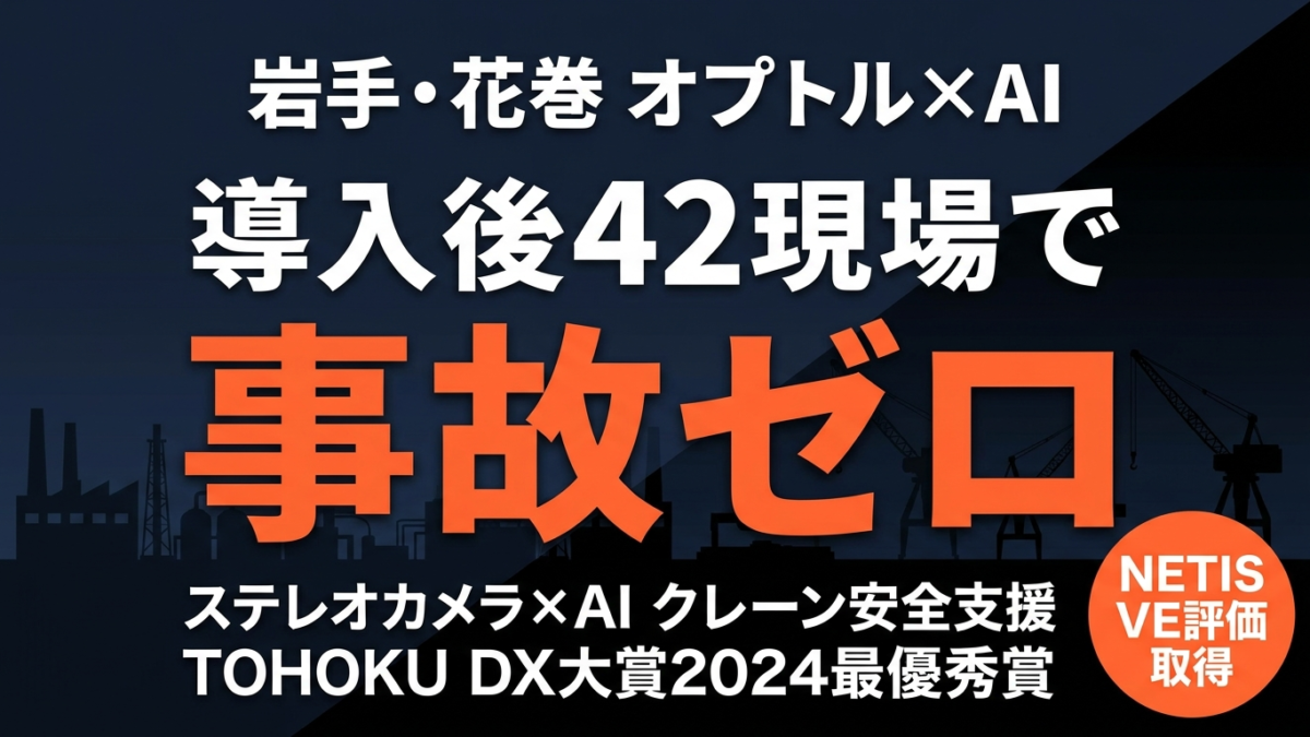結論: 岩手県花巻市の株式会社オプトルが開発した「ステレオカメラ×AI」クレーン作業安全支援システムは、TOHOKU DX大賞2024最優秀賞を受賞し、全国42現場での導入後事故ゼロを達成した北東北製造業AI最前線の実例です。