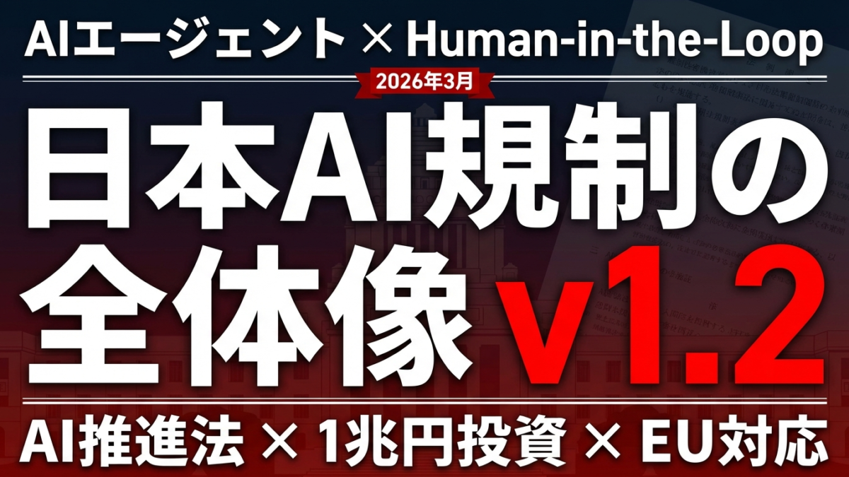 - ガイドラインv1.2でAIエージェントが初の規制対象に — 2026年3月末の正式公開後、Human-in-the-Loop実装が事実上の必須要件に