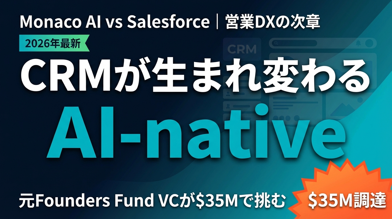 「また新しいCRMか」と思った方、少し待ってほしい。Monacoが打ち出す「AI-native」というコンセプトは、SalesforceやHubSpotがやっている「既存CRMにAIを後付け」するアプローチとは根本的に異なる。ゼロからAIを前提に設計されたCRMが、営業プロセス全体をどう変えるのか。そして、この動きが日本のBtoB営業やCRM市場にどんなインパクトをもたらすのか。