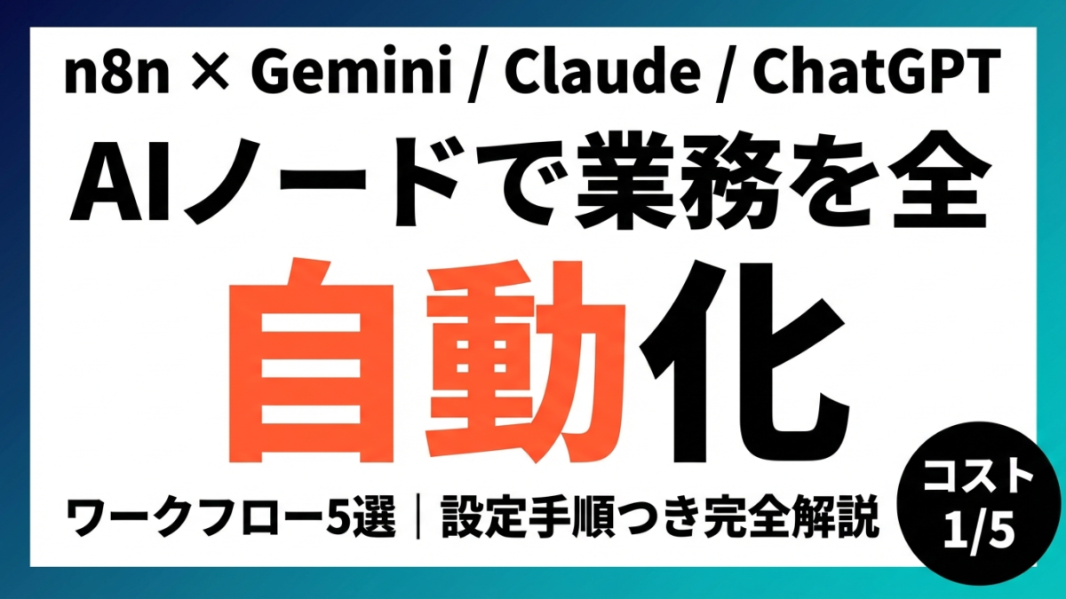 結論: n8nは「AIを業務フローに組み込む」ためのオープンソース自動化プラットフォームであり、OpenAI・Anthropic・Google AIの全主要モデルをノーコードで連携できます。セルフホストすれば月1万円程度のサーバー費用でZapierの月5万円相当の自動化が実現します。