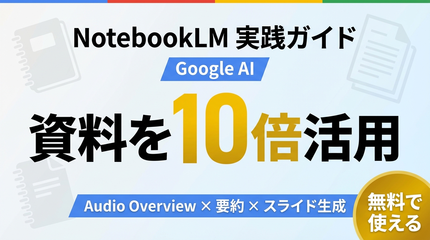 ノートブックに資料を追加したら、Audio Overviewを生成してみてください。そして、通勤中や移動中に聴く。「読む時間がない」を「聴く時間に変換する」感覚を体験すると、もう手放せなくなります。