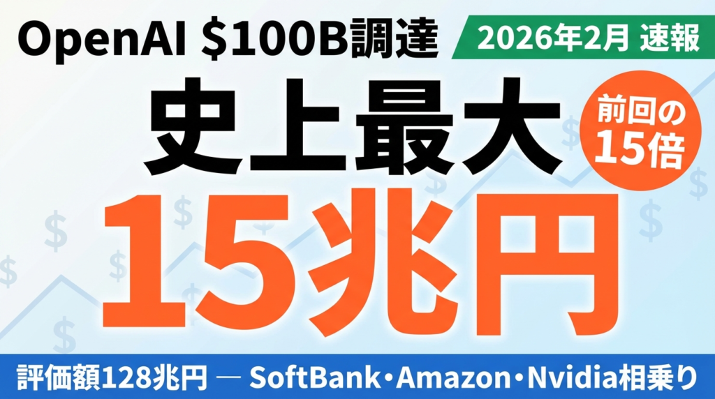 2026年2月19日、BloombergとTechCrunchが一斉に報じた数字は、テック業界の常識を完全に書き換えた。OpenAIが$100B(約15兆円)超の資金調達の最終段階に入ったというニュースだ。
