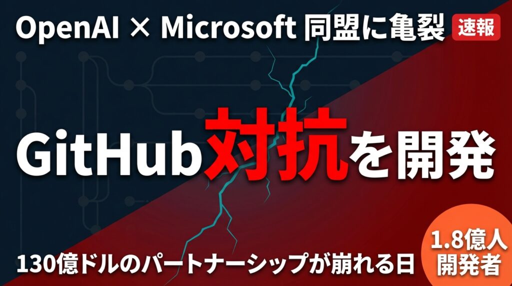 結論:OpenAIがGitHub対抗のコードホスティングプラットフォームを開発中。最大の出資者Microsoftのコア事業に挑む戦略は、開発者エコシステムの地殻変動を予告しています。