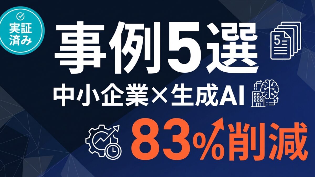 - 要点1: 中小企業5業種(製造・不動産・士業・小売EC・建設)の生成AI導入成功事例を、具体的な数字付きで解説