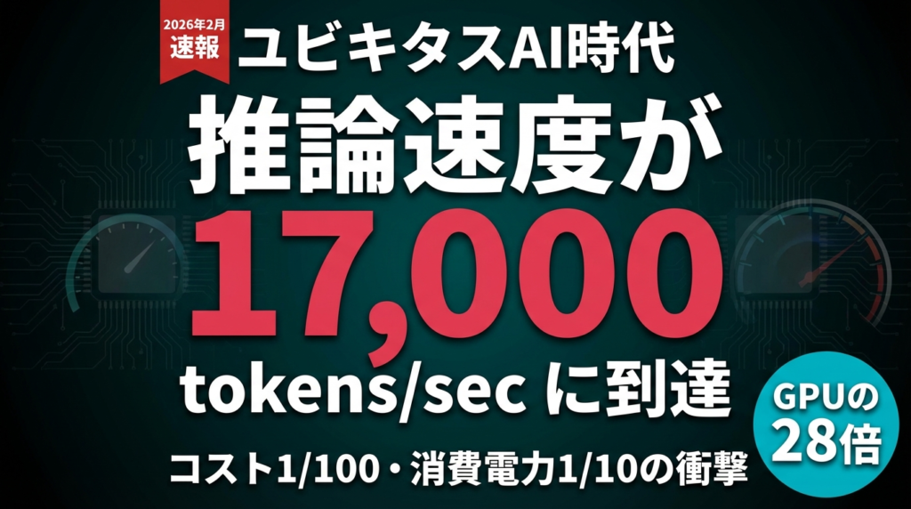 AI推論の速度が17,000 tokens/secに到達。製造コスト20分の1、消費電力10分の1。「AIがいつでもどこでも使える」ユビキタスAI時代が、もう始まっています。