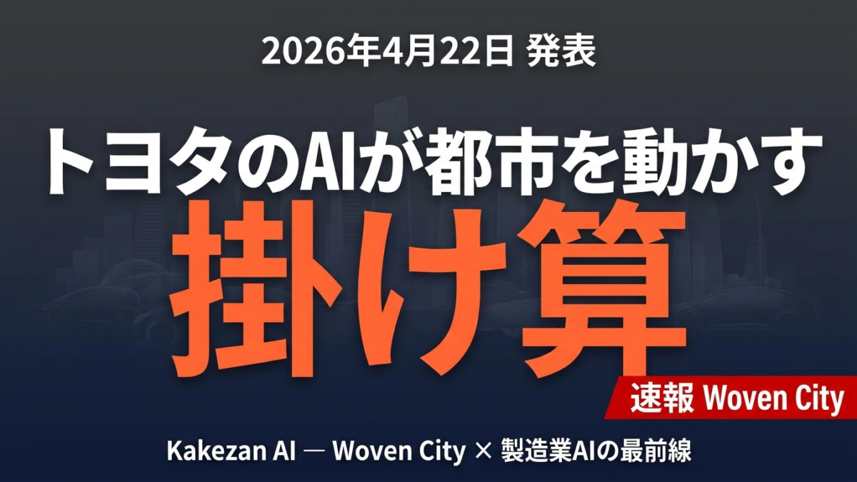結論: Woven by Toyotaは2026年4月22日、Woven City向けに独自AIモデル群「Kakezan(掛け算)」を発表しました。AI Vision Engine・ANZEN System・Infra Hubの3基盤が、製造業×AIのリアルワールド実装の最前線を示しています。